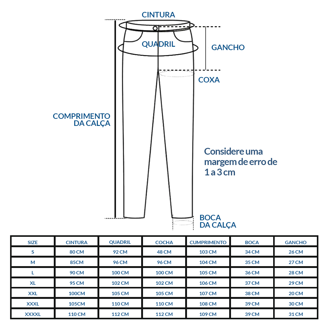 | Cor | Preta com zipper, Preta sem zipper, Jeans, Caqui, Cinza |