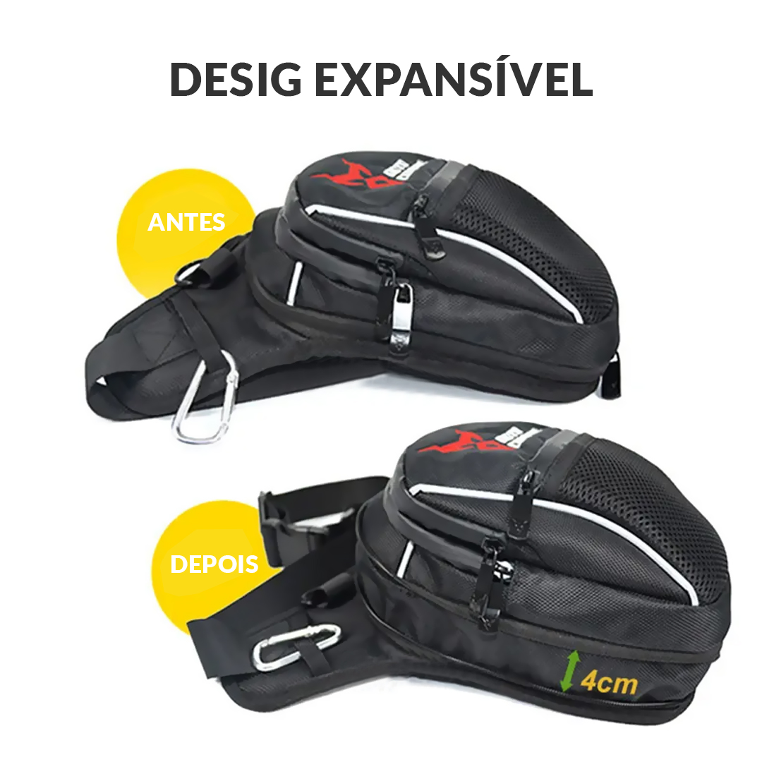 Incrível bolsa, estilo cartucheira, para uso na perna. Prática, confortável e multiuso. Tem capacidade expansível e comporta uma grande quantidade de itens. É impermeável e com um design super anatômico e moderno.