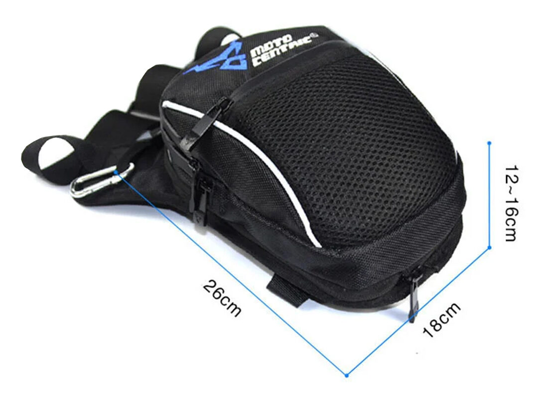 - Pode ser usado como bolsa de perna, bolsa de cintura, mochila.