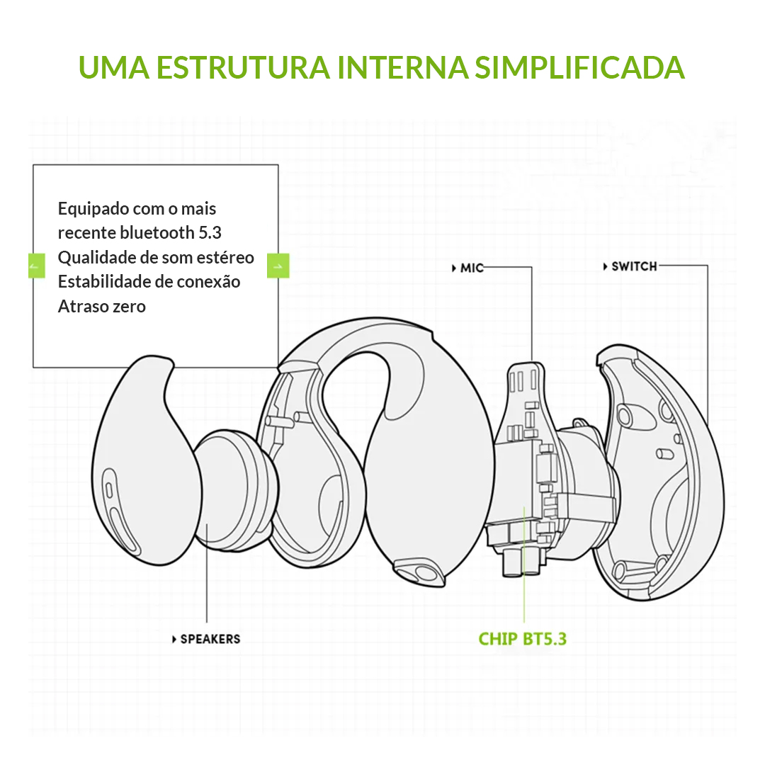 O fone de ouvido com condução óssea é equipado com chip Bluetooth 5.2, o que torna a conexão mais estável e a velocidade de transmissão mais rápida.