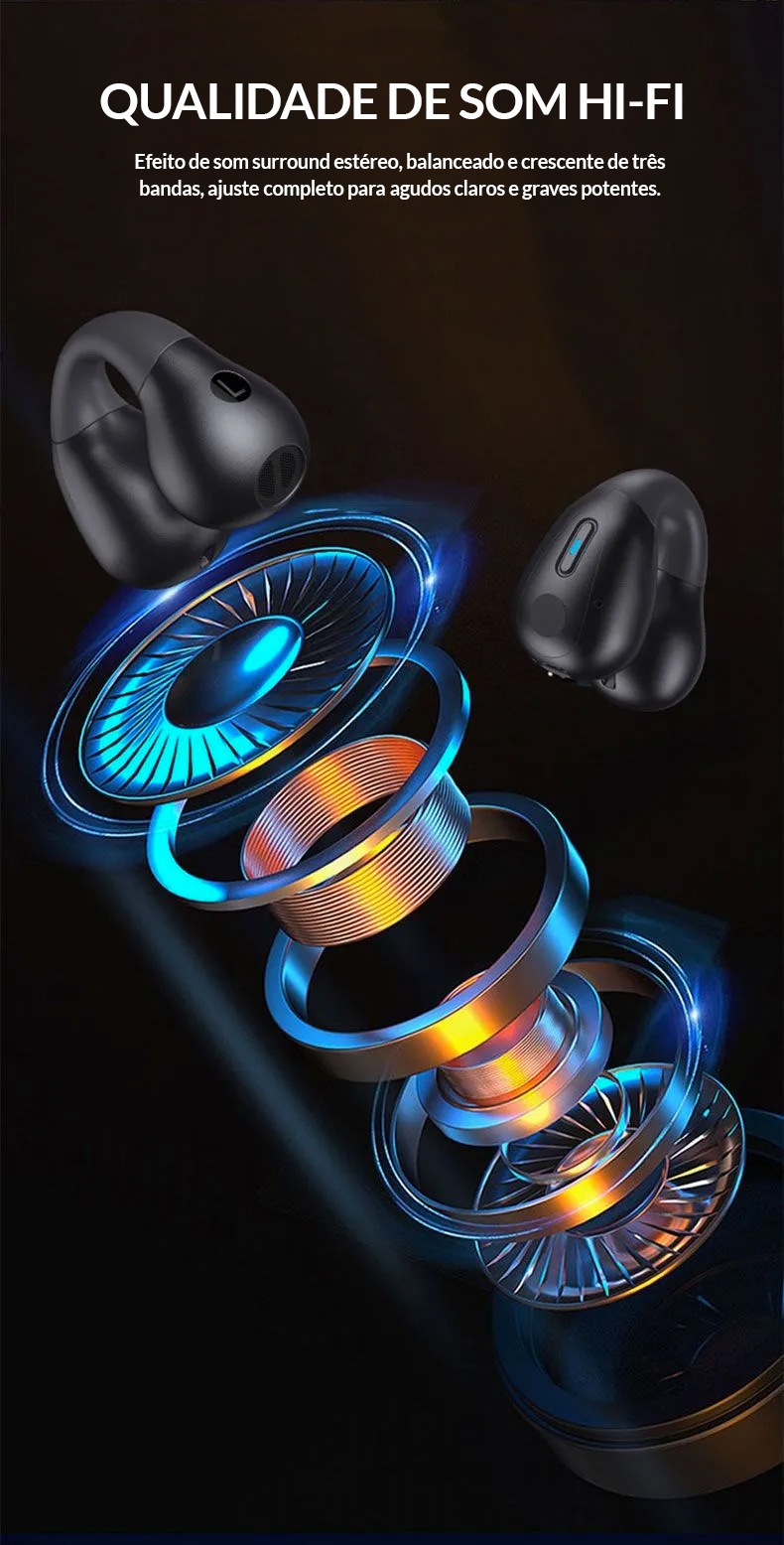 O fone de ouvido com condução óssea é equipado com chip Bluetooth 5.3, o que torna a conexão mais estável e a velocidade de transmissão mais rápida.
