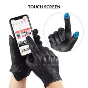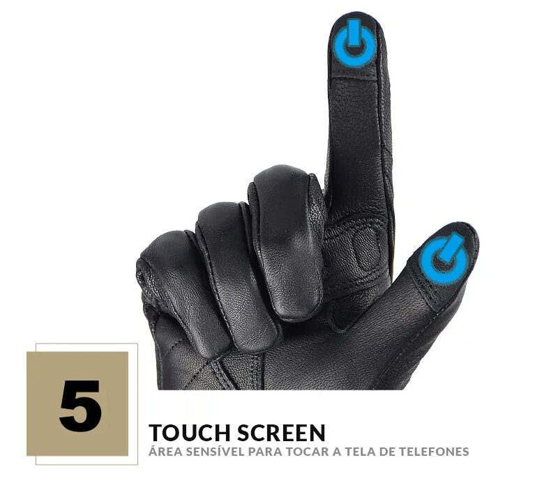 Luvas de couro genuíno, em estilo retrô, com proteção para os dedos. Confortável e com ótima resistência ao desgaste, impermeável, tem os dedos bem flexíveis. Indicada para dias de outono e inverno leve, com velcro ajustável se encaixa bem ao pulso. Com área do dedo indicador e dedão sensíveis ao toque de telas.