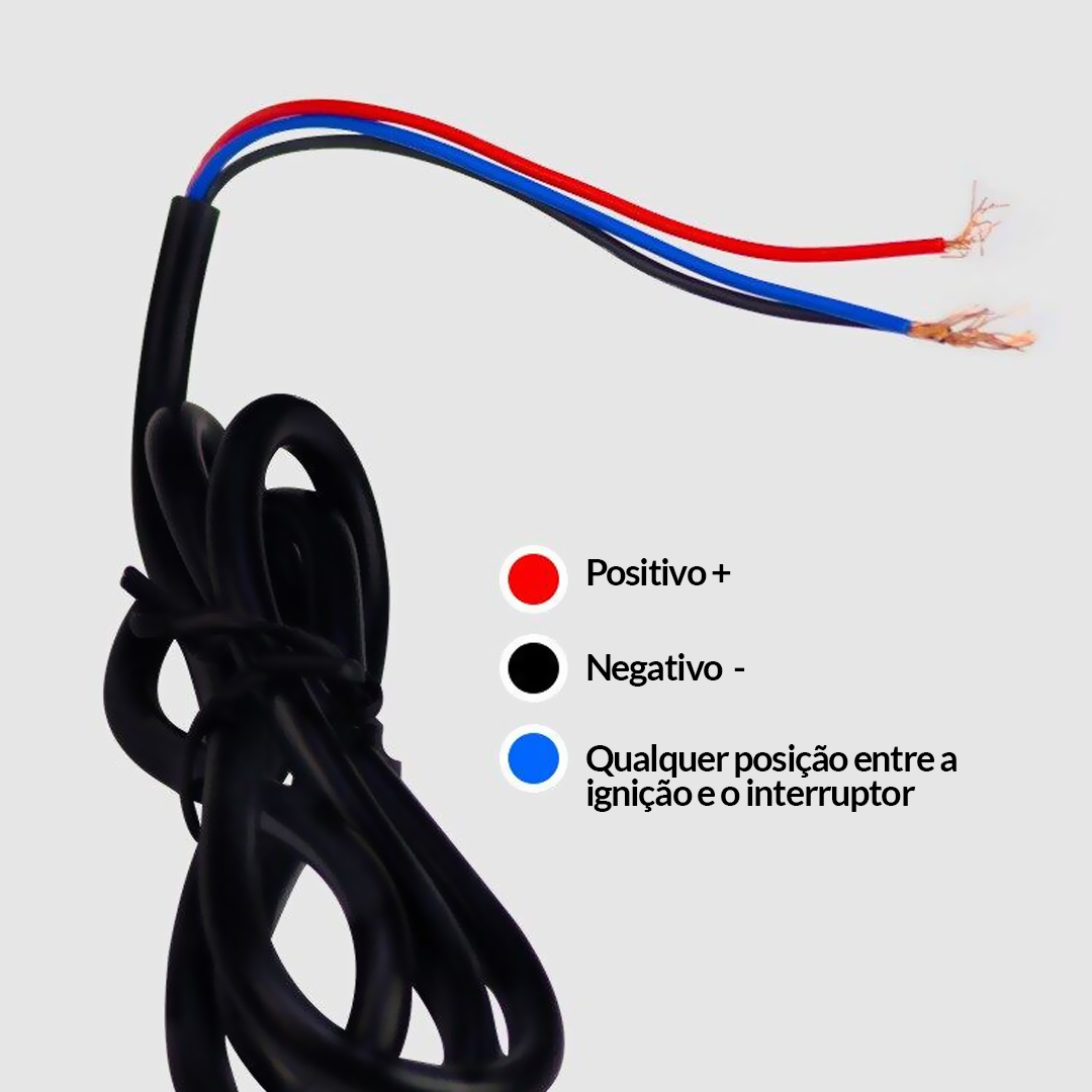 - Funções: Voltímetro, Relógio eletrônico, temperatura do motor