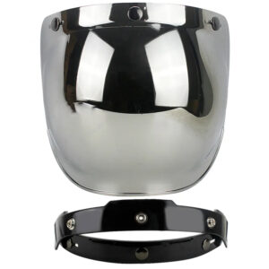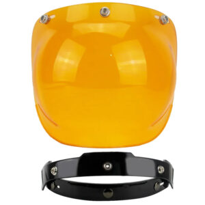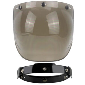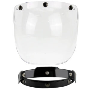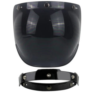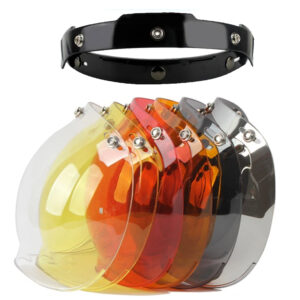 A viseira é resistente a riscos e possui proteção UV. Disponível em uma variedade de cores é adequada para homens ou mulheres e serve para a maioria dos capacetes retro com 3 botões.