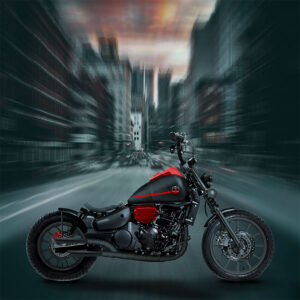 Esse projeto buscou um crossover entre a modernidade e o clássico na concepção de uma caferacer única, linhas e acessórios modernos seguindo a arquitetura mais fiel possível ao estilo. Renovando uma das estruturas mais usadas para customização do mercado a Suzuki Intruder 125cc.